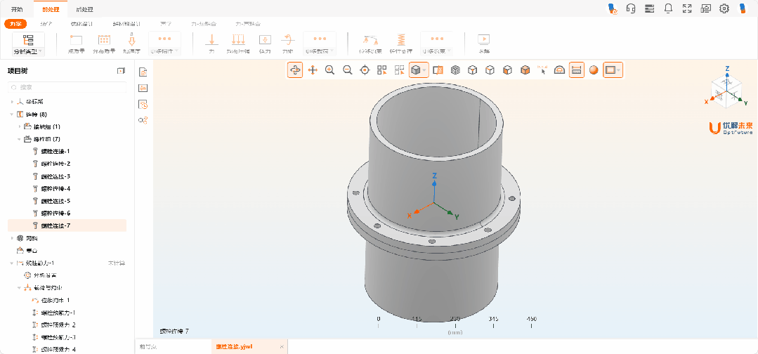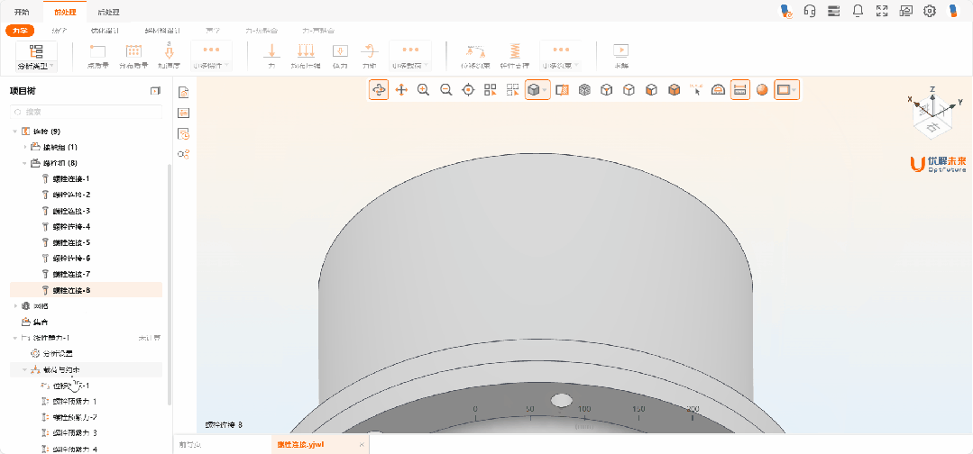 新增螺栓连接与预紧力定义功能,帮助用户快速高效完成螺栓定义。该功能可考虑实际工况中螺栓连接的载荷传递路径和应力分布,预测预紧状态。