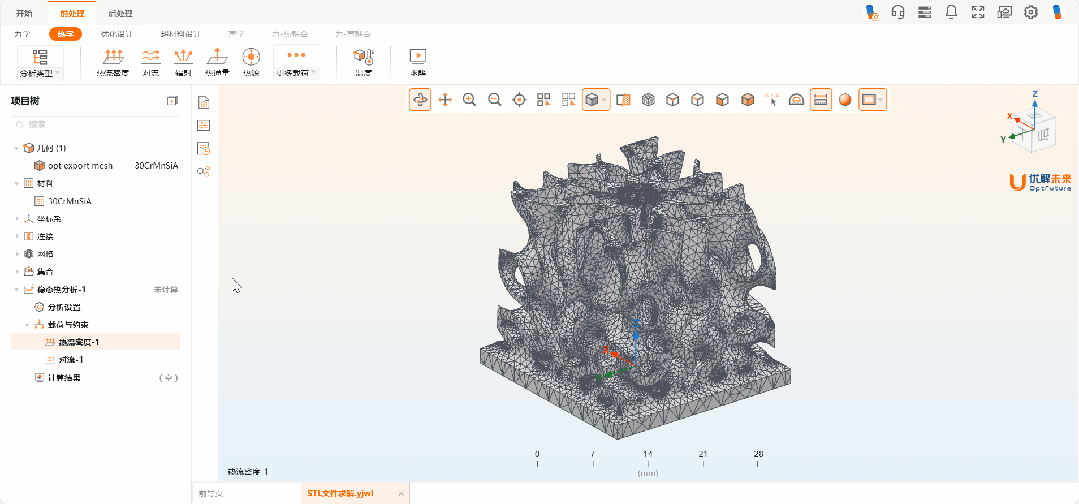 支持STL格式文件进行仿真计算,赋能晶格结构设计与正向设计重复验证工作,使其从“可设计”走向“可制造”,真正在多样化场景中落地生根。无需将STL文件转换为STEP或IGES等中间求解格式,可直接对STL模型进行分析。